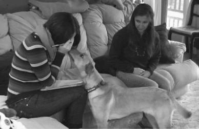 一只狗安慰假装哭泣的“陌生人”(实验人员),旁边是它的主人 / [17]